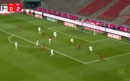 9'拜仁断球反击,莱万轻松破门,VAR研判确定其并不越位,拜仁1比0领先!